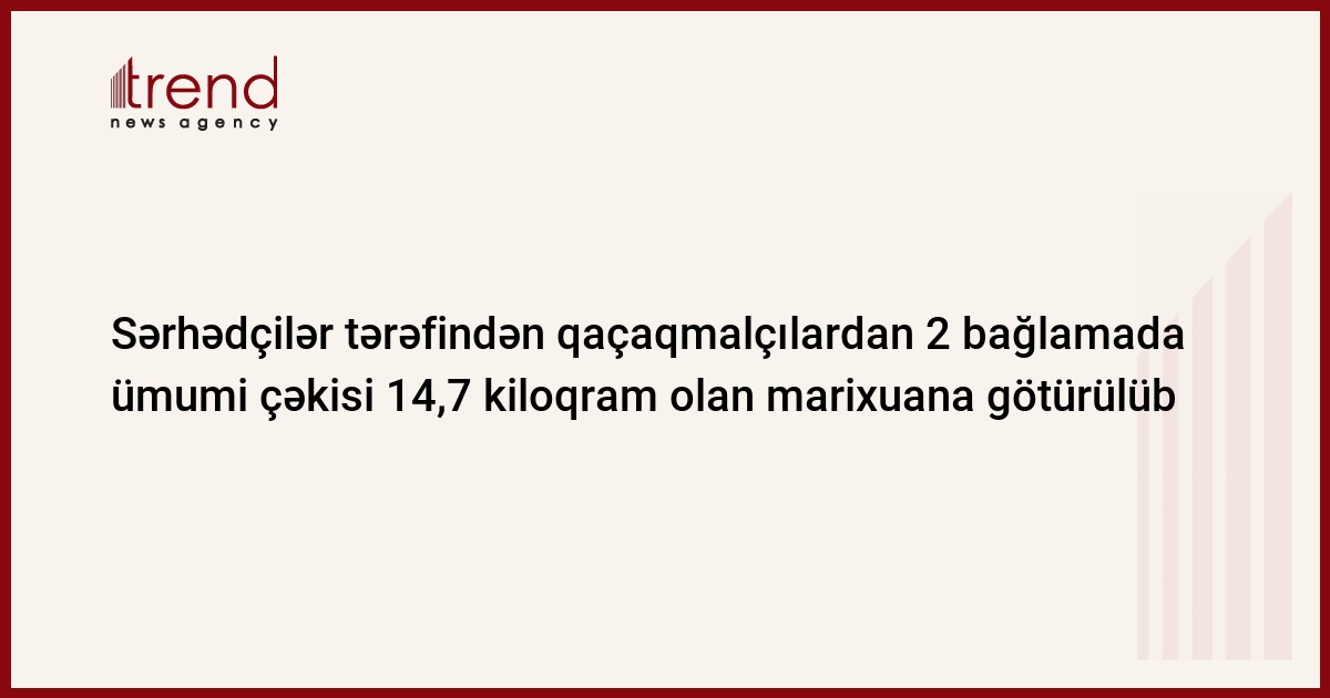 Horadiz sərhəd dəstəsinin əməkdaşları tərəfindən qaçaqmalçılardan 2 bağlamada ümumi çəkisi 14,7 kiloqram olan marixuana götürülüb. Bu barədə Trend ə Azərbaycanın Dövlət Sərhəd Xidmətinin mətbuat mərkəzindən məlumat verilib.