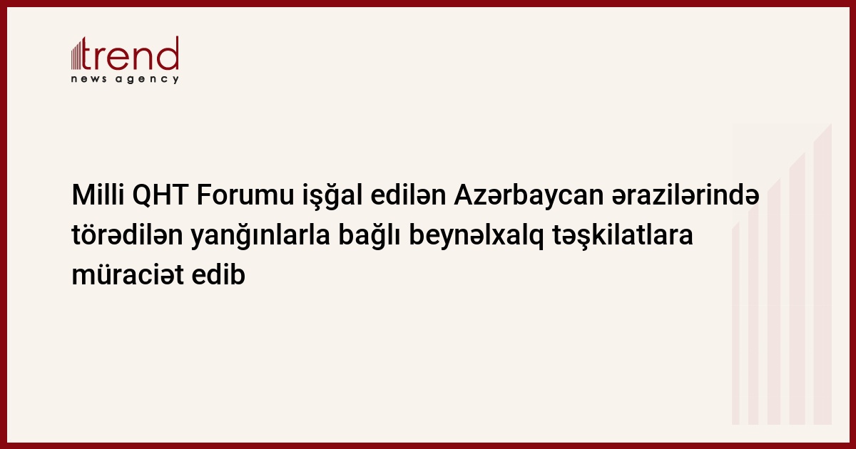 Milli QHT Forumu Ermənistan tərəfindən işğal olunan Azərbaycan ərazilərində törədilən yanğınlarla bağlı NATO, ATƏT, Avropa Birliyi və Avropa Şurasına yenidən müraciət edib. Trend xəbər verir ki, bu məsələ ilə bağlı iyulun 14-də Milli QHT Forumunun ofisində toplantı keçirilib.