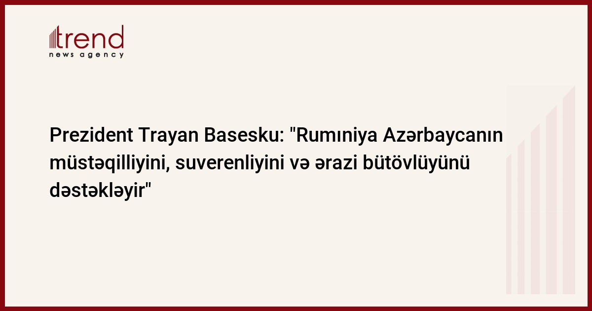 - Əlbəttə. Mən hər zaman təsdiqləmişəm ki, Rumıniya Azərbaycanın müstəqilliyini, suverenliyini və ərazi bütövlüyünü dəstəkləyir.