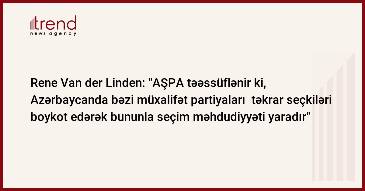 Avropa Şurası Parlament Assambleyası (AŞPA) təəssüflənir ki, Azərbaycanda bəzi müxalifət partiyaları təkrar seçkiləri baykot edərək bununla seçim məhdudiyyəti yaradır. Trend xəbər verir ki, bu barədə "Azadlıq" bloku liderlərinin və bir sıra QHT rəhbərlərinin iyunun 23-də AŞPA prezidenti Rene Van der Lindenə ünvanlanan məktuba cavabda bildirilib.