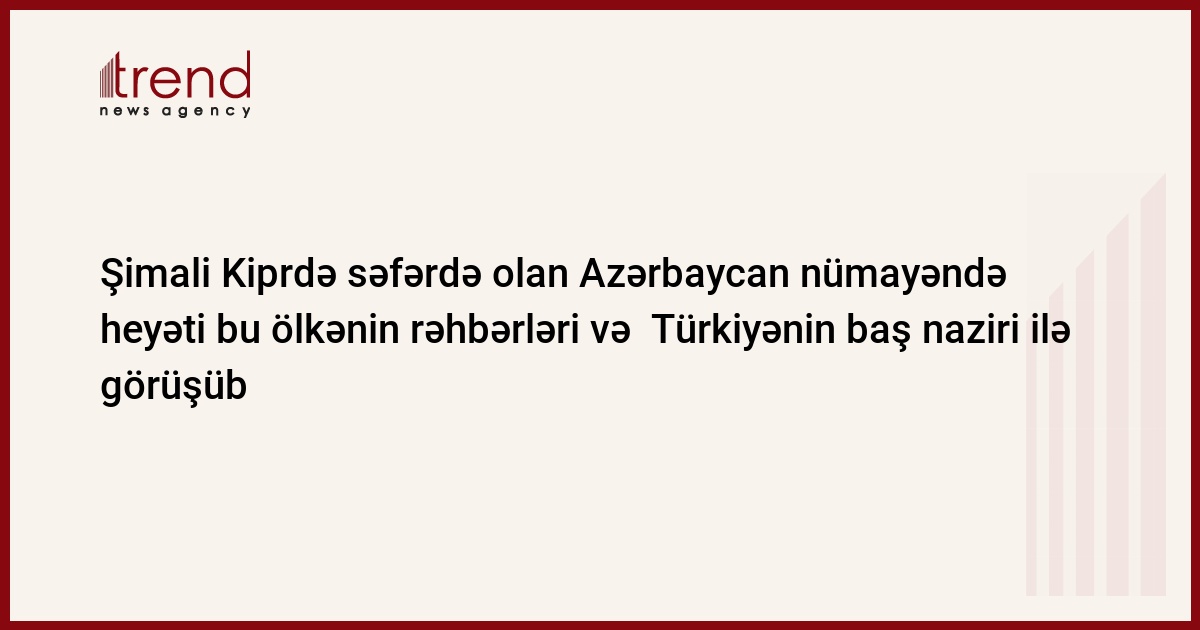 Quzey Kıprıs Türk Cümhuriyyətinin (QKTC) "Barış və özgürlük" azadlıq bayramında iştirak etmək üçün Lefkoşaya gələn Türkiyə Cmühuriyyətinin baş naziri Rəcəb Taib Ərdoğan Azərbaycan nümayəndə heyəti ilə görüşüb. Bu barədə Trend ə adıçəkilən bayram tədbirində iştirak edən Azərbaycan Milli Məclisinin üzvü Aynur Quliyeva bildirib.
