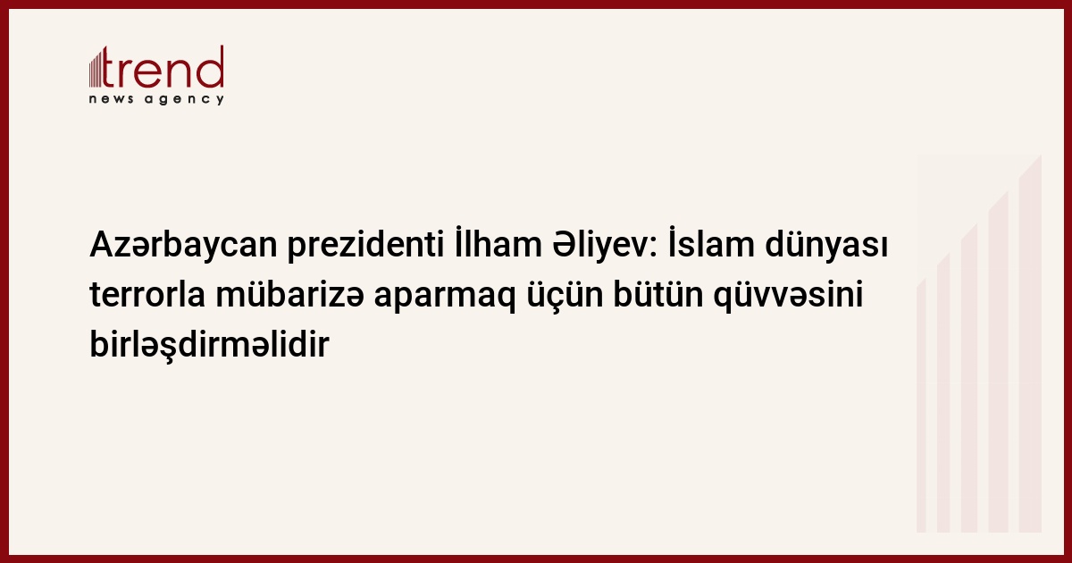 Bəzi qüvvələr islamı terrorla əlaqələndirmək istəyirlər. İslam - dünyəvi və tolerant dindir. Biz sülh və əmin-amanlıq içində yaşamaq istəyirik və buna nail olacağıq. Trend xəbər verir ki, bu barədə Azərbaycan prezidenti İlham Əliyev bu gün Bakıda İslam Konfransı Təşkilatına (İKT) üzv olan ölkələrin turizm nazirlərinin beşinci konfransında çıxış edərkən bildirib.