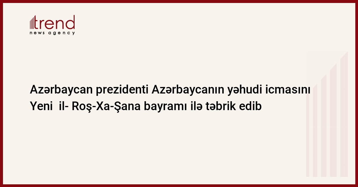 Azərbaycan prezidenti İlham Əliyev Azərbaycanın yəhudi icmasını Yeni il - Roş-Xa-Şana bayramı ilə təbrik edib. Bu barədə Trend xəbər verir. Prezidentin təbrik məktubunda qeyd olunub ki, bu gün Azərbaycanda milli-etnik və dini tolerantlıq atmosferi hökmranlıq edir. "Bu cəhətdən ölkəmiz bir çox dövlətlərə nümunə ola bilər", - deyə prezident qeyd edib.