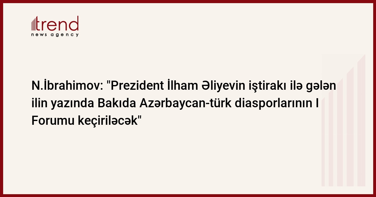 N.İbrahimovun sözlərinə görə, I Forumda Azərbaycan prezidenti İlham Əliyev, həmçininin Trükiyənin rəsmi şəxsləri, müxtəlif ölkələrdən parlament nümayəndələri, türkdilli dövlətlərin təmsilçiləri iştirak edəcək.