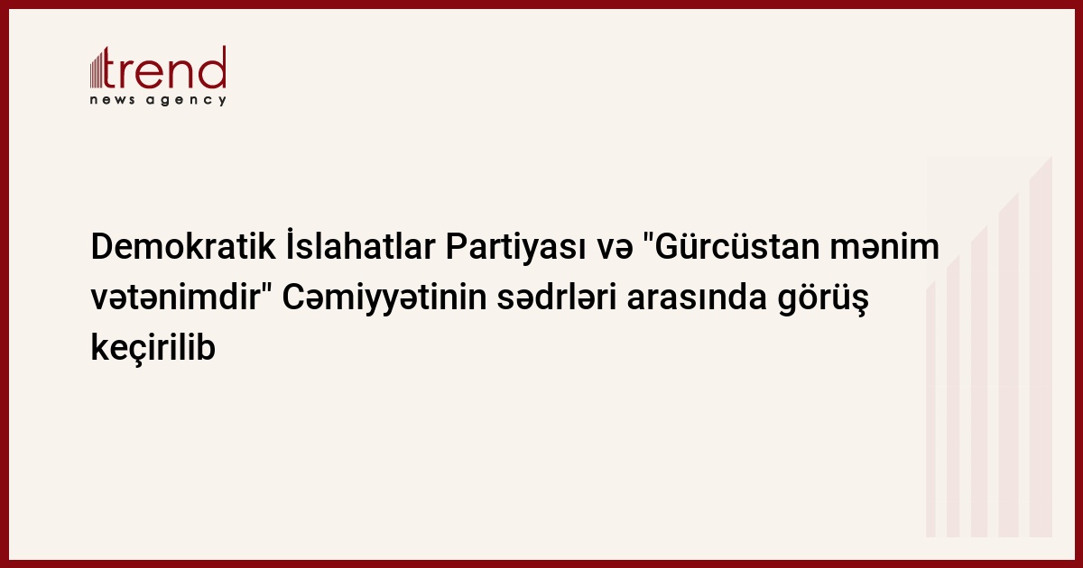 Demokratik İslahatlar Partiyasının sədri, millət vəkili Asim Mollazadə "Gürcüstan mənim vətənimdir" Cəmiyyətinin sədri Əli Babayevlə görüşüb. Bu barədə Trend ə Demokratik İslahatlar Partiyasından (DİP) məlumat verilib.