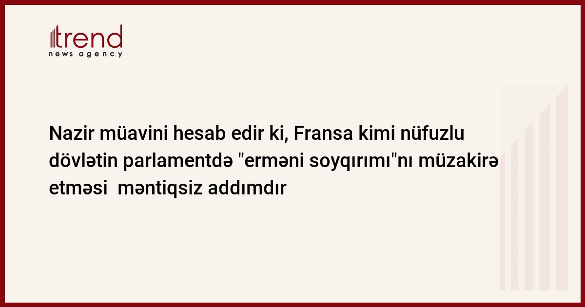 Fransa kimi nüfuzlu dövlətin parlamentdə erməni soyqırımı məsələsini müzakirə etməsi - məntiqsiz addımdır. Trend xəbər verir ki, bu barədə xarici işlər nazirinin müavini Xələf Xələfov məlumat verib.