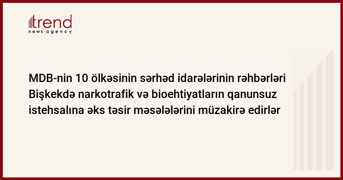 Bu gün Qırğızıstanın paytaxtında MDB-nin iştirakçı-dövlətlərinin Sərhəd qoşunları komandanları şurasının /SQKŞ/ 56-cı toplantısı açıq elan olunub. Bu toplantının işində MDB-nin on ölkəsinin sərhəd idarələrinin rəhbərləri iştirak edir, Gürcüstan və Türkmənistan nümayəndələri isə iştirak etmir. Toplantıda sərhəd idarələrinin rəhbərləri MDB ölkələrinin hazırki sərhədlərində vəziyyət haqqında informasiya mübadiləsi aparacaq, Əfqanıstandan narkotrafikə müqavimət, silah dövriyyəsi və qanunsuz mühacirlərin gəlməsi üzrə xüsusi sərhəd əməliyyatlarını yekunlaşdıracaqlar.