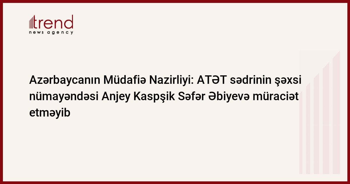 ATƏT sədrinin şəxsi nümayəndəsi Anjey Kaspşik Azərbaycan və Ermənistan müdafiə nazirlərinin görüşməsi təklifi ilə Səfər Əbiyevə müraciət etməyib. Bu barədə Trend ə Azərbaycanın Müdafiə Nazirliyinin mətbuat xidmətinin rəhbəri Ramiz Məlikov məlumat verib.
