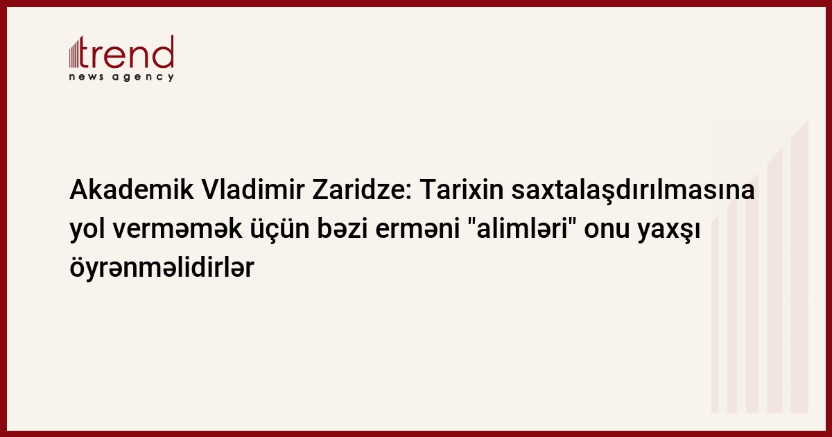İvansyan, Miqranyan və Muradyan kimi erməni tədqiqatçı- alimləri tarixin saxtalaşdırılmasına yol verməmək üçün onu yaxşı öyrənməlidirlər. Bu barədə Gürcüstan Milli Akademiyasının həqiqi üzvü, akademik Vladimir Zaridze Trend ə eksklüziv olaraq məlumat verib.