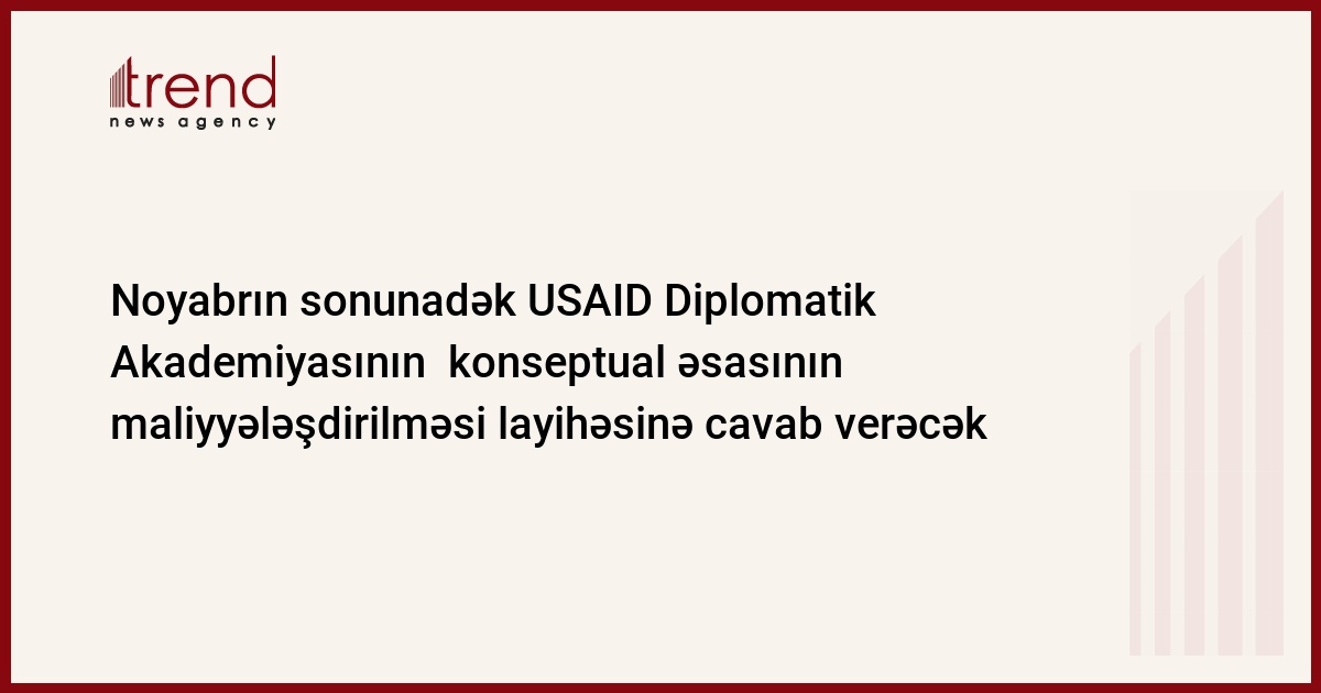 ABŞ-ın Ticarətin inkişafı üzrə agentliyi noyabrın sonunadək Azərbaycan Diplomatik Akademiyasının konseptual əsasının maliyyələşdirilməsi layihəsinə cavab verəcək. Trend xəbər verir ki, bu barədə jurnalistlərə Azərbaycanın xarici işlər nazirinin müavini, akademiyanın rektoru Hafiz Paşayev məlumat verib.