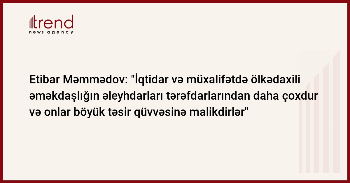 - Mən də bu məlumatları oxudum, amma partiyanın sədri Ayaz Rüstəmov bildirdi ki, hansısa jurnalistlər onun fikrini düzgün başa düşməyiblər. Yəni, məlumat həqiqətə uyğun deyil. Əməkdaşlığa gəldikdə isə, mən zorən əməkdaşlığın tərəfdarı deyiləm. Siyasi təşkilatlar maraqları üst-üstə düşəndə bir araya gəlirlər, düşməyəndə ayrı-ayrılıqda fəaliyyətlərini davam etdirirlər. Bu, təbii şəkildə baş verən prosesdir. Partiyalararası əməkdaşlığı süni şəkildə qurmaq, ya da belə bir görüntü yaratmaq faydasız bir işdir.