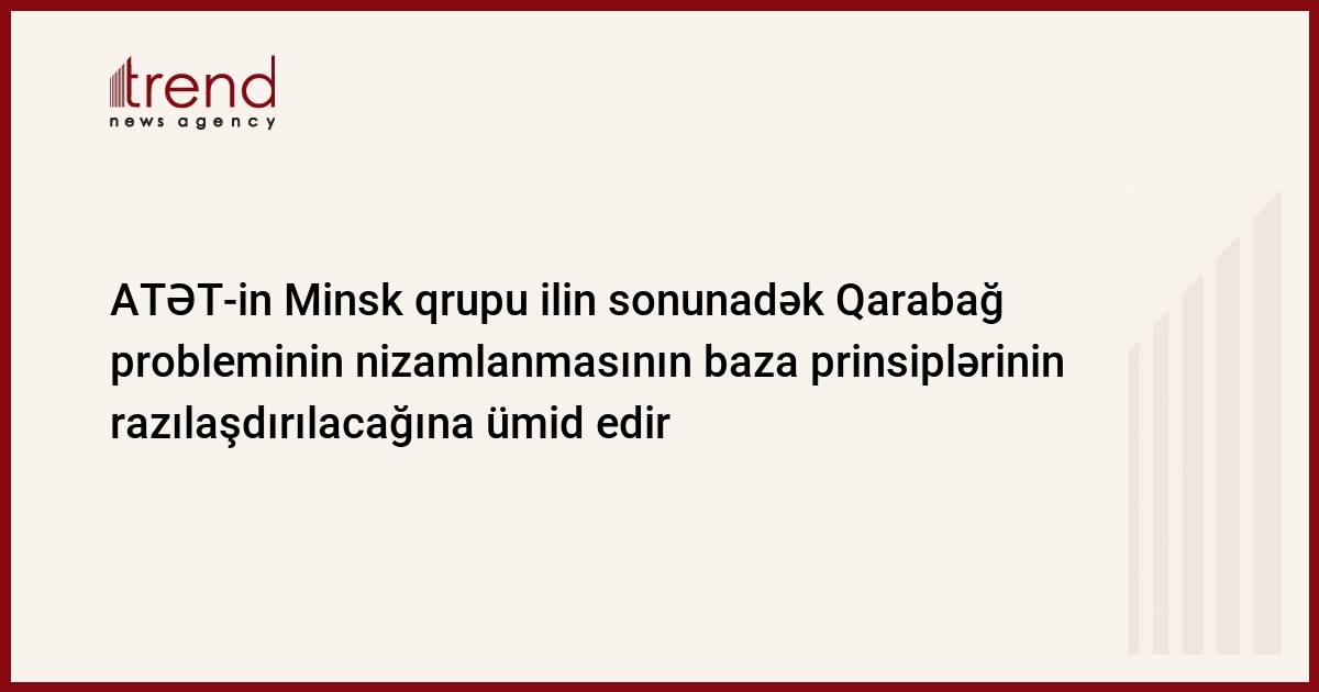 Minsk qrupunun Dağlıq Qarabağ münaqişəsinin nizamlanması üzrə həmsədrləri ümid edirlər ki, Azərbaycan və Ermənistan prezidentlərinin növbəti görüşü ən yaxın gələcəkdə baş tutacaq. Bu barədə Trend xəbər verir.
