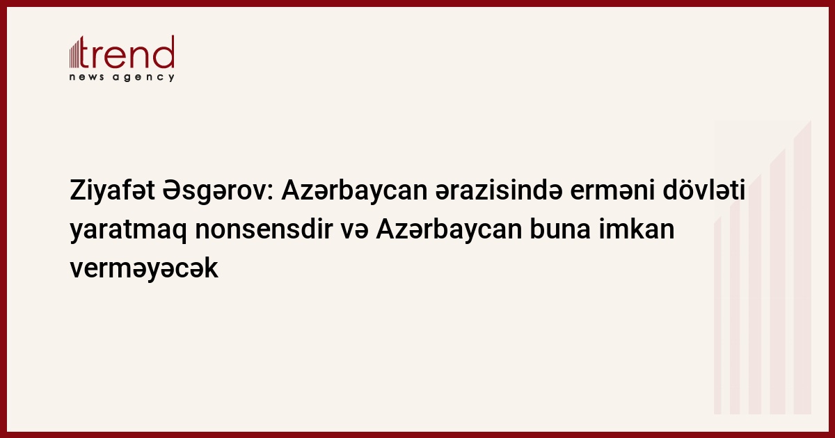 Azərbaycan ərazisində erməni dövləti yaratmaq nonsensdir və Azərbaycan buna imkan verməyəcək. Trend in xəbərinə görə, bu barədə jurnalistlərə Azərbaycan Respublikası Milli Məclisinin vitse-spikeri, Milli Məclisin NATO Parlament Assambleyasındakı nümayəndə heyətinin rəhbəri Ziyafət Əsgərov məlumat verib.