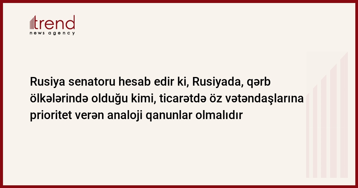Rusiyada, qərb ölkələrində olduğu kimi, ticarətdə öz vətəndaşlarına prioritet verən analoji qanun və normalar olmalıdır. Bu barədə Federasiya Şurasının üzvü, Federasiya Şurası Komitəsinin MDB işləri üzrə sədr müavini Andrey Nelidov RF hökümətinin 1 aprel 2007-ci il tarixindən RF ərazisində xarici vətəndaşlara pərakəndə satışla məşğul olmasına qadağanın qoyulması haqqında qətnaməsini şərh edərkən Trend in xüsusi müxbirinə eksklüziv olaraq məlumat verib.