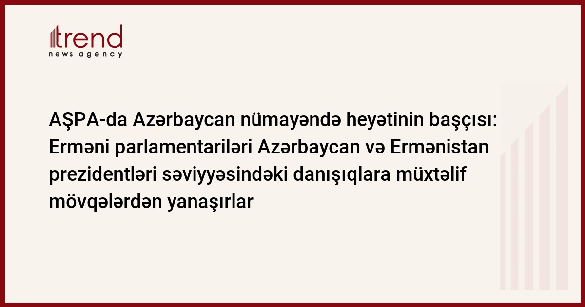 Erməni parlamentariləri Azərbaycan və Ermənistan prezidentləri səviyyəsindəki danışıqlara müxtəlif mövqələrdən yanaşırlar. Trend xəbər verir ki, bu barədə AŞPA-da Azərbaycan nümayəndə heyətinin başçısı Səməd Seyidov erməni nümayəndə heyətinin bu gün Bakıda keçirilən AŞPA siyasi komitəsinin toplantısında iştirak etməkdən imtina etməsini şərh edərkən bildirib.
