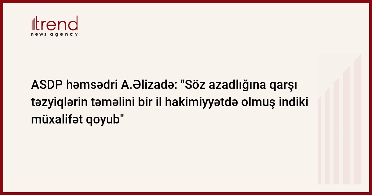 "Söz azadlığını özləri pozmuş insanlar bu gün söz azadlığından danışırlar. Bu, çox gülüncdür". Bu fikirləri Trend ə açıqlamasında Azərbaycan Sosial Demokrat Partiyasının (ASDP) həmsədri Araz Əlizadə bildirib.
