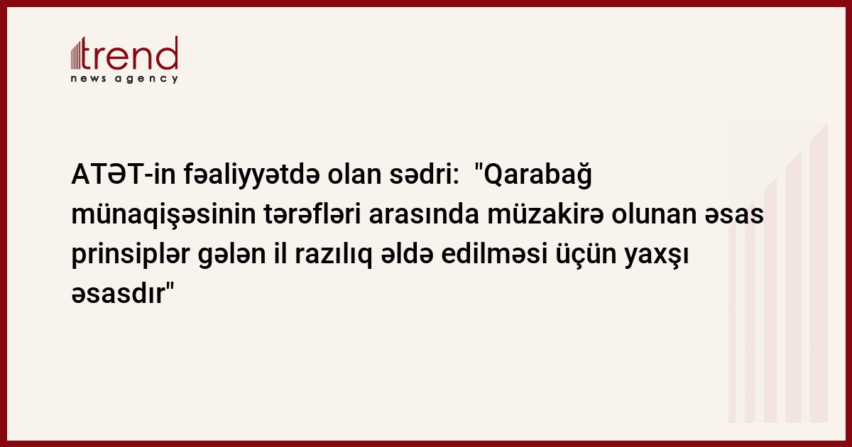 O qeyd edib: "İki tərəf arasında müzakirə olunan sonuncu əsas prinsiplər gələcək inkişaf üçün ağıllı və yaxşı əsasdır. Mən gələn il razılıq əldə edilməsinin mümkünlüyünə inanıram".
