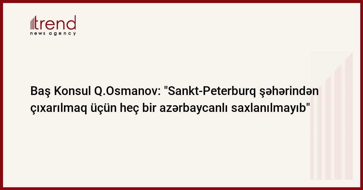 "Rusiyanın Sankt-Peterburq şəhərindən çıxarılması üçün heç bir azərbaycanlı saxlanılmayıb". Bu barədə Trend ə Azərbaycan Respublikasının Sankt-Peterburq şəhərindəki Baş Konsulu Qüdsi Osmanov məlumat verib.