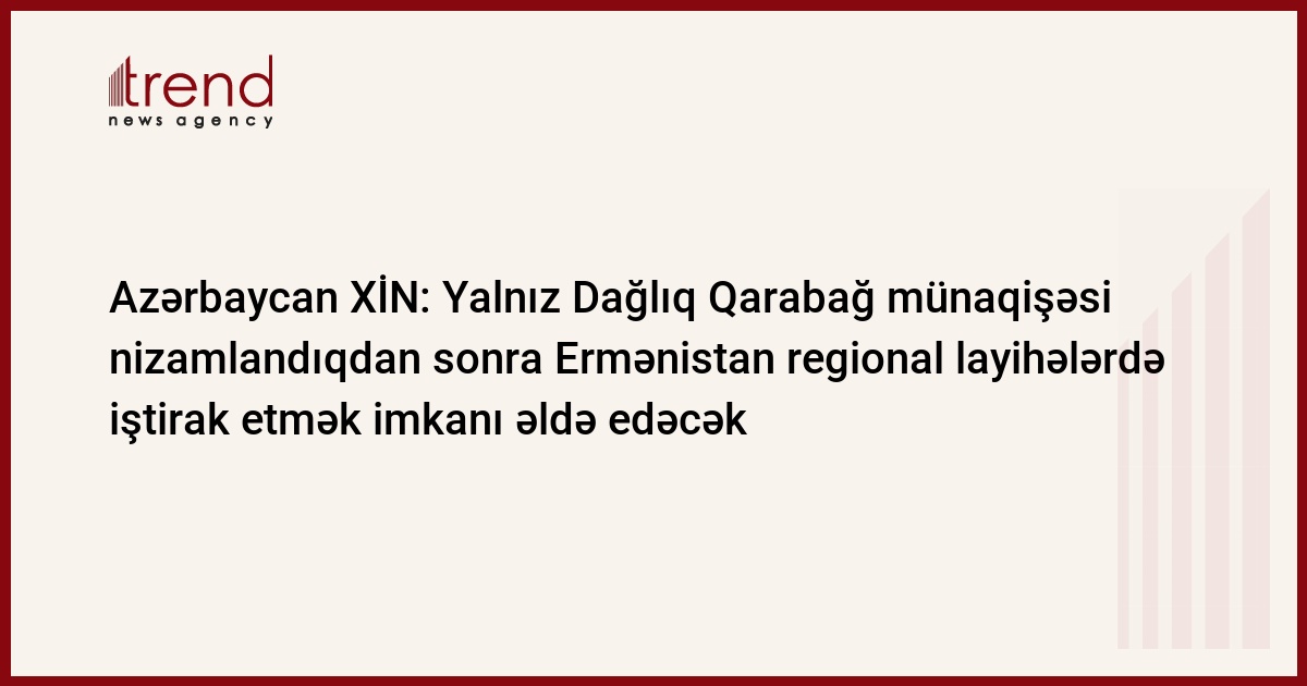 Yalnız münaqişə nizamlandıqdan sonra Azərbaycan Ermənistanla olan münasibətlərinin normallaşdırılması məsələsini nəzərdən keçirməyə hazır olacaq, bu isə Ermənistanın bölgədəki çoxtərəfli layihələrdə iştirakını da mümkün edir. Bu barədə Trend ə Azərbaycan XİN informasiya siyasəti və mətbuat idarəsinin rəisi Tahir Tağızadə məlumat verib. O, Ermənistan xarici işlər nazirinin müavini Qeqam Qaribcanyanın öz ölkəsinin "Qars-Axalkalaki-Tbilisi-Bakı dəmir yolu magistralının tikintisi layihəsinə qoşulmağa" hazır olması haqqında bəyanatına şərh verib.
