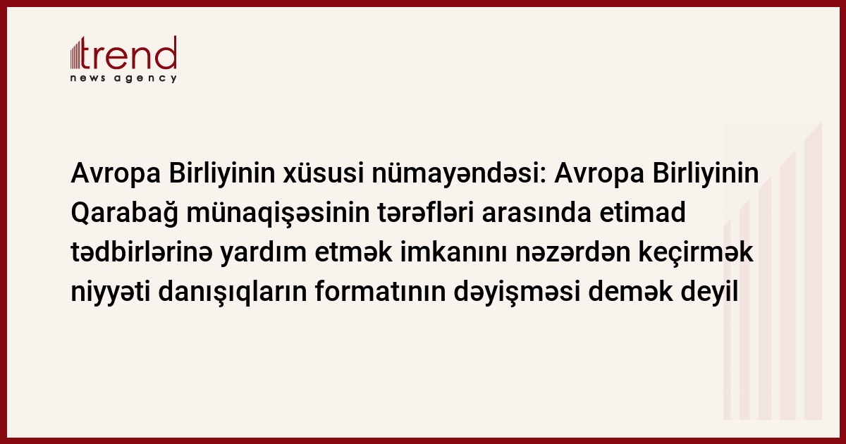 O qeyd edib ki, Avropa Birliyi ATƏT-in Minsk qrupunu tamamilə dəstəkləyir və Avropa Birliyinin Qarabağ münaqişəsinin tərəfləri arasında etimad tədbirlərinə yardım etmək imkanını nəzərdən keçirmək niyyəti danışıqların formatının dəyişməsi demək deyil.