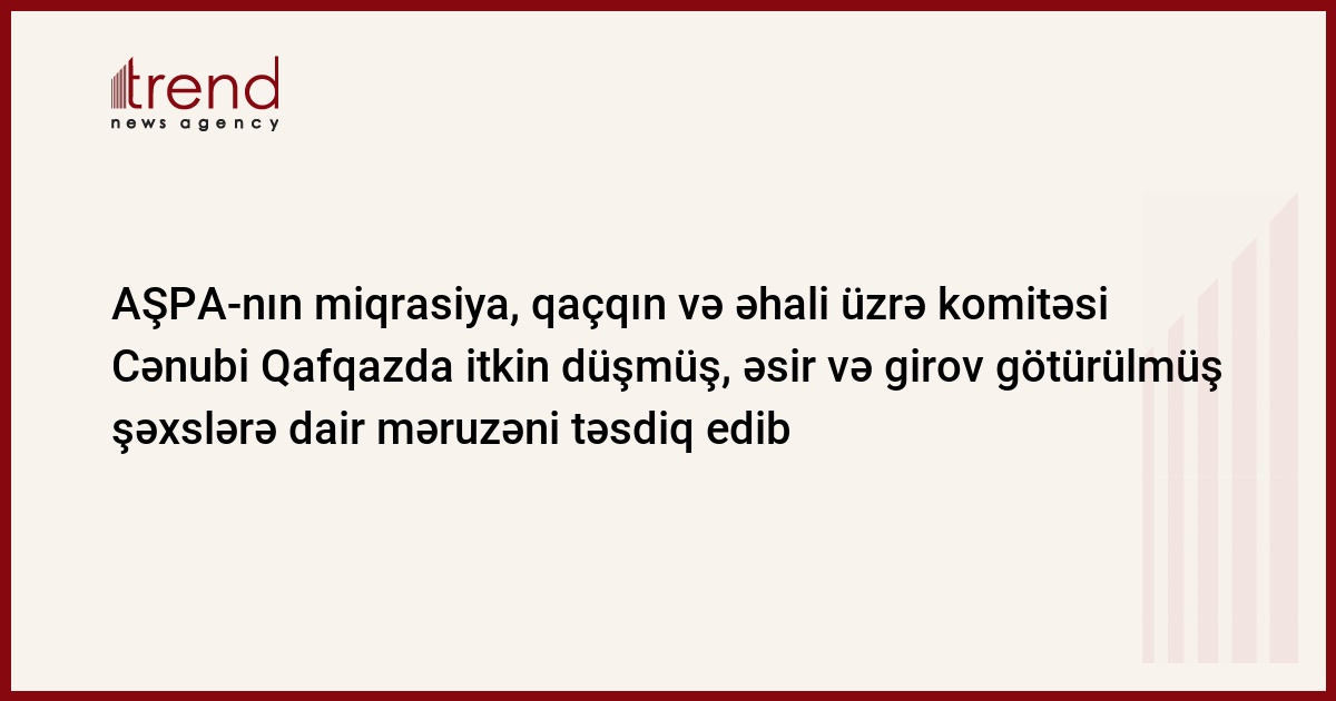 AŞPA-nın miqrasiya, qaçqın və əhali üzrə komitəsi hollandiyalı deputat Leo Platvoetin hazırladığı, Cənubi Qafqazda itkin düşmüş, əsir və girov götürülmüş şəxslərə dair məruzəni təsdiq edib. Bu barədə Trend ə Leo Platvoetin özü eksklüziv olaraq məlumat verib.