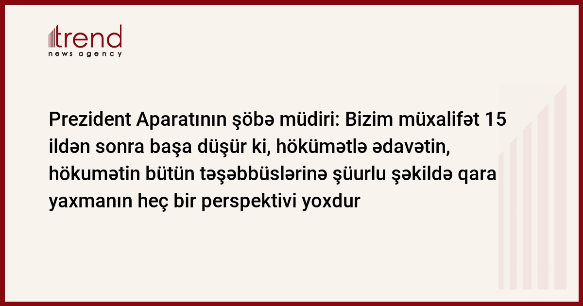 Ə.Həsənov qeyd edib ki, hökumət müxalifət partiyalarını və bu institutları bütövlükdə öz opponentləri kimi qiymətləndirir. "Biz hər zaman opponentlərimizin Azərbaycanın inkişafına yönəlmiş konstruktiv ideyalarına diqqət yetirmişik. Əgər Azərbaycan Demokrat Partiyası və digər partiyalar konstruktiv yol seçsələr, biz bunu yalnız salamlayacağıq", - deyə şöbə müdiri bildirib.