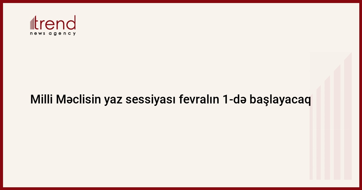 Milli Məclisin yaz sessiyası fevralın 1-də başlayacaq. Trend in məlumatına görə, qanunverici orqanın ilk iclasında intizam və hesablayıcı komissiyaların tərkibi yenidən təşkil olunacaq, yaz sessiyası üçün iş planı təsdiq ediləcək. Bundan başqa türkdilli ölkələrin dövlət başçılarının IIII zirvə görüşündə qəbul olunmuş Antaliya bəyannaməsinin təsdiq edilməsi barədə, Azərbaycanın "Bitki Karantini və Mühafizəsi üzrə Avropa və Aralıq dənizi Təşkilatının yaradılması haqqında" Konvensiyaya qoşulması barədə", "Azərbaycan Respublikası hökuməti və Kuba Respublikası hökuməti arasında diplomatik, rəsmi və xidməti pasportlara malik olan vətəndaşların vizasız gediş-gəlişi haqqında" sazişin təsdiq edilməsi barədə", "Milli Məclisin deputatının statusu haqqında" qanuna əlavələrin və dəyişikliklərin edilməsi barədə", "Qeyri-dövlət (özəl) mühafizə fəaliyyəti haqqında" qanun layihələrinə baxılacaq, habelə Azərbaycan Respublikasının bəzi qanunvericilik aktlarına əlavələr və dəyişikliklər olunacaq.