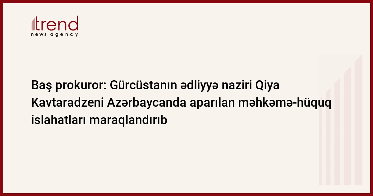 Gürcüstanın ədliyyə naziri Giya Kavtaradzeni Azərbaycanda aparılan məhkəmə-hüquq islahatları maraqlandırıb. Bu barədə Trend ə Azərbaycanın baş prokuroru Zakir Qaralov məlumat verib.