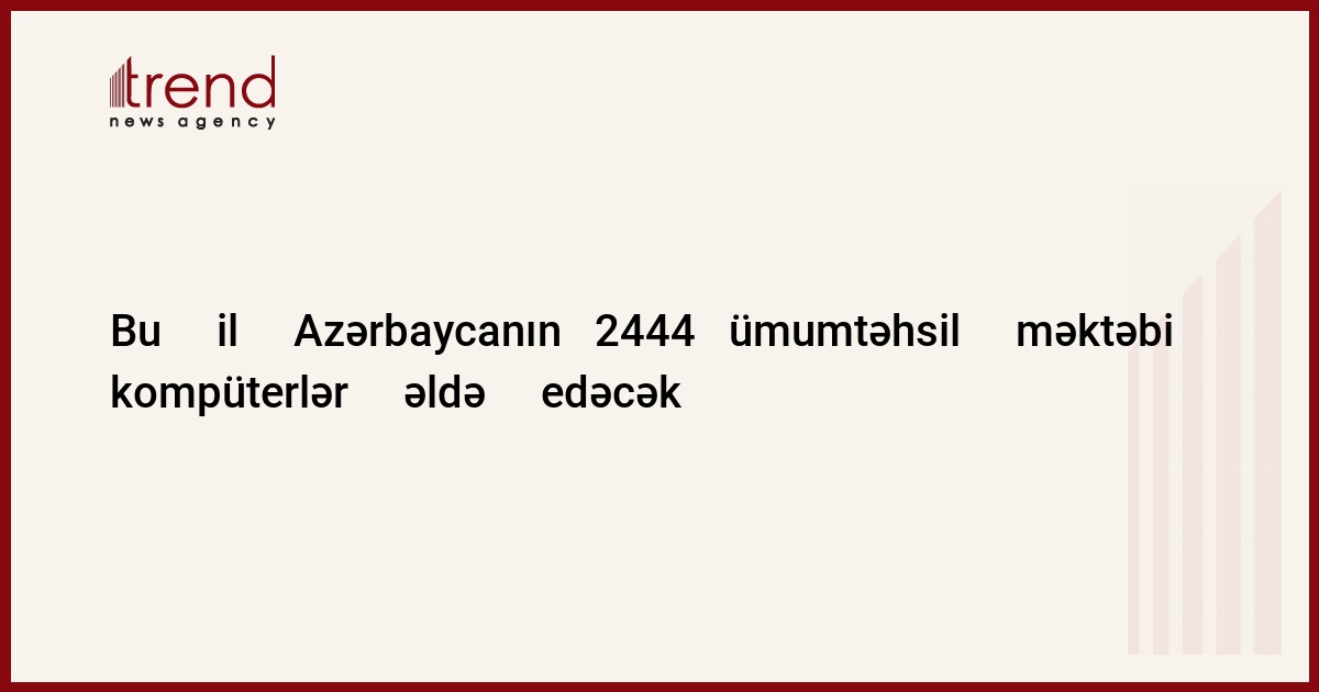 Azərbaycan, Bakı/müxbir Trend S.Ağayeva/ Bu il Azərbaycanın 2444 ümumtəhsil məktəbi 9 min kompüter əldə edəcək. Kompüterlər məktəblərə "Ümumtəhsil məktəblərin informasiya-siyasi texnologiyaları ilə təmin olunması dövlət proqramı" çərçivəsində təqdim olunacaq. Bu barədə təhsil nazirliyindən məlumat verilib. Dövlət proqramı çərçivəsində 10 min müəllim üçün treninqlərin keçirilməsi planlaşdırılıb. Proqramın həyata keçirilməsi məsələləri nazirlikdə müşavirədə müzakirə edilib. Müşavirədə bu sahədə problemlər, həmçinin internetə çıxış da müzakirə olunub. Azərbaycanın təhsil naziri yeni dövlət proqramı layihəsinin hazırlanmasının zəruriliyini qeyd edib. Belə ki, hazırkı proqram bu il başa çatır. Nazir artıq 2008-2012-ci illəri əhatə edəcək "Azərbaycan təhsil sisteminin informasiyalaşdırılması dövlət proqramı" layihəsinin hazırlanmasına aid əmr imzalayıb.