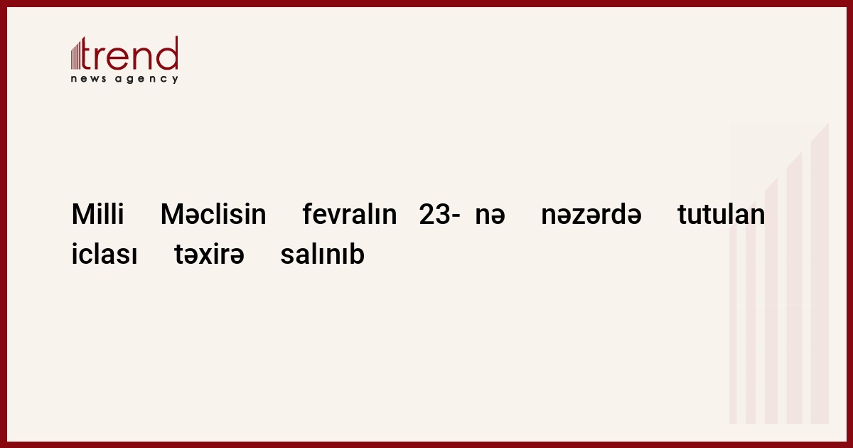 Azərbaycan, Bakı / Trend müxbir İ.Əlizadə/ Milli Məclisin fevralın 23-də keçirilməsi nəzərdə tutulan iclası təxirə salınıb. Bu barədə Milli Məclisin mətbuat xidmətindən məlumat verilib. Bildirilib ki, müzakirə üçün hazır qanun layihələri olduqda parlamentin iclasları keçirilir. Hələlik isə müzakirə üçün hazır qanun layihələri yoxdur. Növbəti toplantının nə vaxt baş tutacağı dəqiqləşməyib.