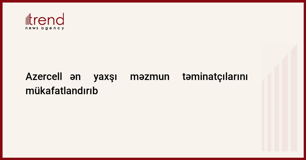 Azərbaycan, Bakı/müxbir Trend S.Babayeva/Azərbaycanın mobil operatoru Azercell BM məzmun təminatçılarının təltifetmə mərasimini keçirib. Şikətin məlumatına əsasən, Azercell BM-in baş müdiri A.Halim Ateş abonentlərini yeni xidmətlərlə sevindirdiklərini və bu işdə çoxsaylı tərəfdaşlarına arxalandıqlarını bildirib.