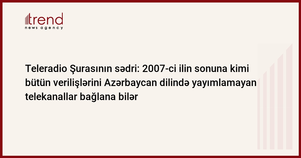 Azərbaycan, Bakı/ Trend müxbir S.İlhamqızı/ Milli Televiziya və Radio Şurası 2007-ci ilin sonuna kimi bütün verilişlərini Azərbaycan dilində yayımlamayan telekanalların bağlanması haqda qərar çıxara bilər. Bu barədə Trend ə Teleradio Şurasının sədri Nuşirəvan Məhərrəmli açıqlama verib.