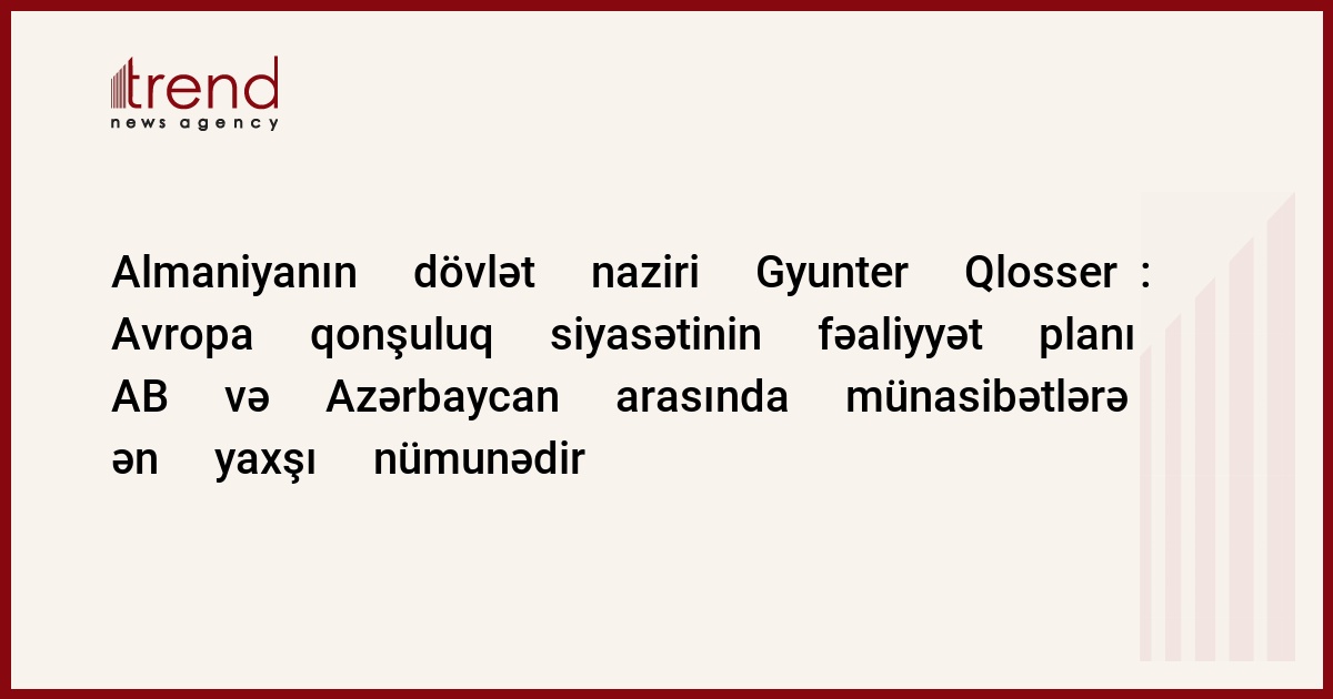 - Almaniya və AB Azərbaycan-Ermənistan münasibətlərinin inkişafını çox yaxından müşahidə edir. ATƏT-in Minsk qrupunun üzvü kimi Almaniya, Azərbacan və Ermənistan arasında danışıqları dəstəkləyir. Almaniya qəti olaraq əmindir ki, yalnız ümumi cəhdlərlə işlənmiş açıq ikitərəfli əməkdaşlıq qətnaməsi Cənubi Qafqazda sabitlik və sülhü təmin edə bilər.