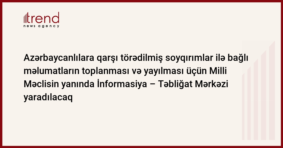 Azərbaycan, Bakı / Trend müxbir İ.Əlizadə/ Milli məclisdə Xocalı faciəsinin 15-ci ildönümünə həsr olunmuş dinləmələr davam edir. Milli Məclis sədrinin müavini, Xocalı faciəsi üzrə yaradılmış komissiyanın sədri Bahar Muradova dinləmələrin sonunda qəbul ediləcək qərar lahiyəsini açıqlayıb. 4 bənddən ibarət olan lahiyədə deyilir ki, Azərbaycanı təmsil edən şəxslər xarici səfərlərdə olarkən, o cümlədən beynəlxalq təşkilatların tədbirlərində iştirak edərkən son 100 ildə azərbaycanlıların məruz qaldıqları soyqırım aktları, o cümlədən Xocalı faciəsi haqqında həqiqətlərin daha geniş yayılmasını təmin etsinlər. Bu məqsədlə Milli Məclisin xarici ölkələrin parlamentləri ilə əlaqələr üzrə işçi qruplarının imkanlarından dolğun və səmərəli istifadə olunsun. İkincisi, ermənistanın ölkəmizə hərbi təcavüzü, Dağlıq Qarabağ və ətraf rayonların işğalı zamanı azərbaycanlılara qarşı törədilmiş soyqırım aktları, xüsusən də Xocalı faciəsi ilə bağlı materialların toplanması, öyrənilməsi, ümumiləşdirilməsi və yayılması məqsədi ilə Milli Məclisin yanında İnformasiya - Təbliğat Mərkəzi yaradılsın.