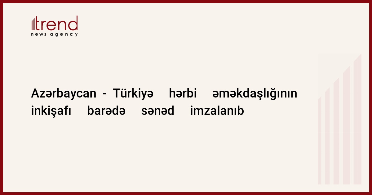 Azərbaycan,Bakı/müxbir Trend Z.İbrahimxəlilova/26 fevral tarixində Bakıda Azərbaycan-Türkiyə hərbi əməkdaşlığının inkişafı barədə sənəd imzalanıb. Bu barədə Azərbaycan Müdafiə Nazirliyinin mətbuat xidmətindən məlumat verilib.