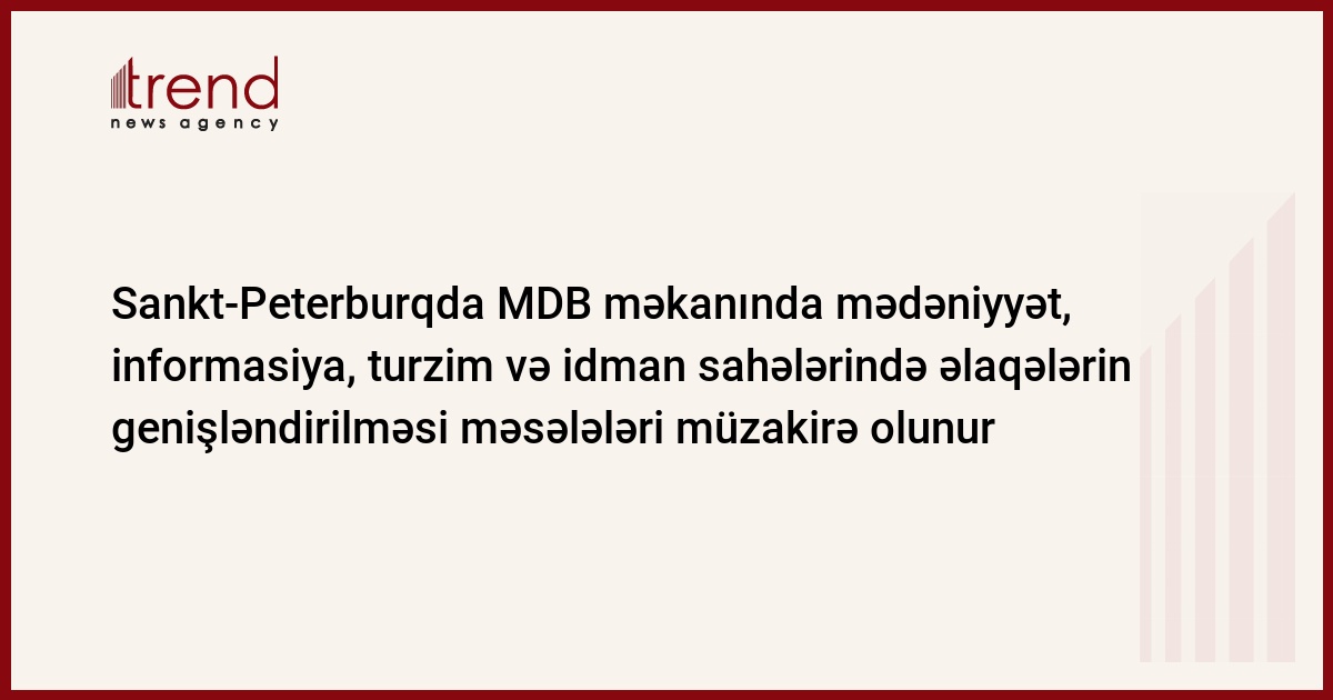 Azərbaycan, Bakı / Trend müxbir İ.Əlizadə/ Martın 5-də Sankt-Peterburqda MDB Parlament Assambleyasının mənzil qərargahında təşkilata üzv olan dövlətlərin mədəniyyət, informasiya, turzim və idman məsələləri ilə bağlı toplantısı keçiriləcək.