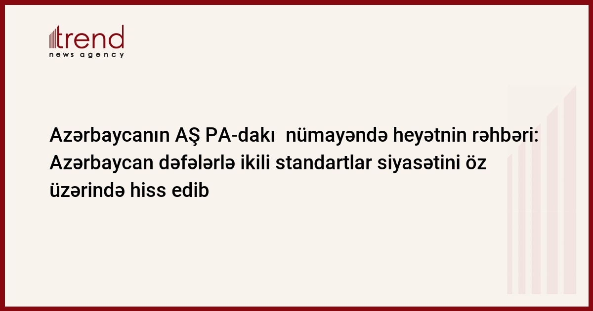 - Əgər ümumilikdə beynəlxalq siyasətdə ikili standartlardan danışsaq, təəssüf ki, yeri var. Azərbaycan dəfələrlə bəzi beynəlxalq təşkilatlardan ikili standartlar siyasətini üzərində hiss edib. Bəli, indi də biz bununla üzləşirik: Azərbaycan ərazisi Ermənistan hərbi qüvvələri tərəfindən zəbt olunub. Bu barədə biz də, beynəlxalq ictimaiyyət də bilir. Lakin təəssüf olsun ki, biz beynəlxalq təşkilatlar səviyyəsində görürük ki, bu münaqişəyə onlar başqa cür yanaşmağa çalışır.