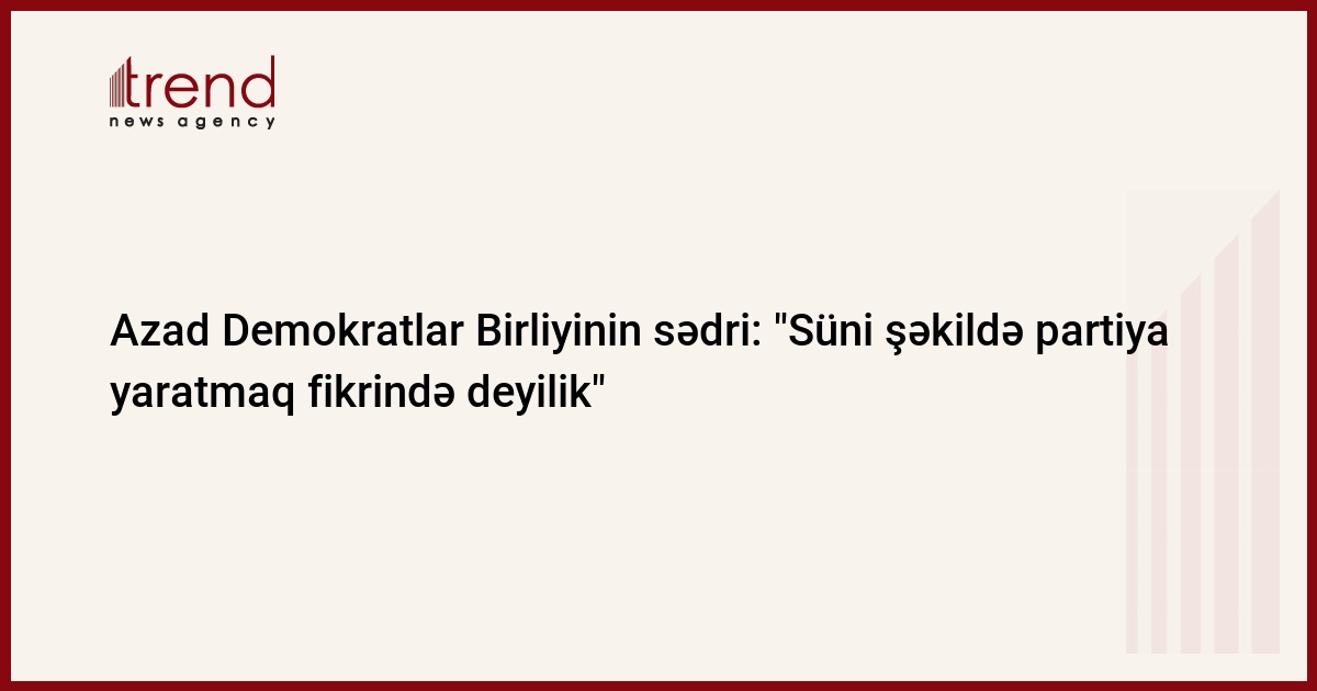 Azərbaycan, Bakı / Trend müxbir S.İlhamqızı/ "Azad Demokratlar Birliyi" partiyasının təsis prosesi ləng gedir, bu da cəmiyyətdəki ictimai, siyasi proseslərin ləng inkişafı ilə bağlıdır. Bu barədə cümə günü "Azad Demokratlar Birliyi" Təşkilat Komitəsinin sədri, millət vəkili Əli Məsimov açıqlama verib.
