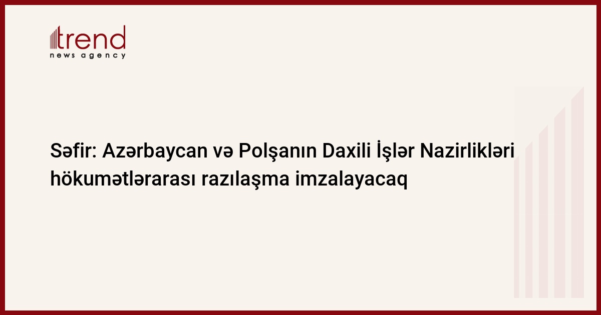 Azərbaycan, Bakı/ Trend müxbir İ.Xəlilova/ Azərbaycan və Polşa iyun ayında Daxili Işlər nazirlikləri arasında hökumətlərarası saziş imzalamağı planlaşdırır. Polşanın Azərbaycandakı səfiri Kşiştof Krayevskinin bazar ertəsi verdiyi məlumata görə, iyunun 1-də Polşanın daxili işlər naziri Yanuş Kaçmerikin Bakıya səfəri gözlənilir.