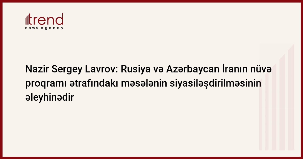Azərbaycan, Bakı/ Trend müxbir S.Ağayeva/ Azərbaycan və Rusiya maraqlıdır ki, İran ətrafındakı məsələ siyasiləşdirilməsin və təzyiqlərlə yox, yaranmış hər bir məsələ rəsmi Tehranla dialoq yolu ilə həll olunsun. Bunu bazar ertəsi Bakıda Azərbayacanlı həmkarı Elmar Məmmədyarovla keçirilən görüşündən sonra brifinqdə Rusiyanın xarici işlər naziri Sergey Lavrov bildirib.