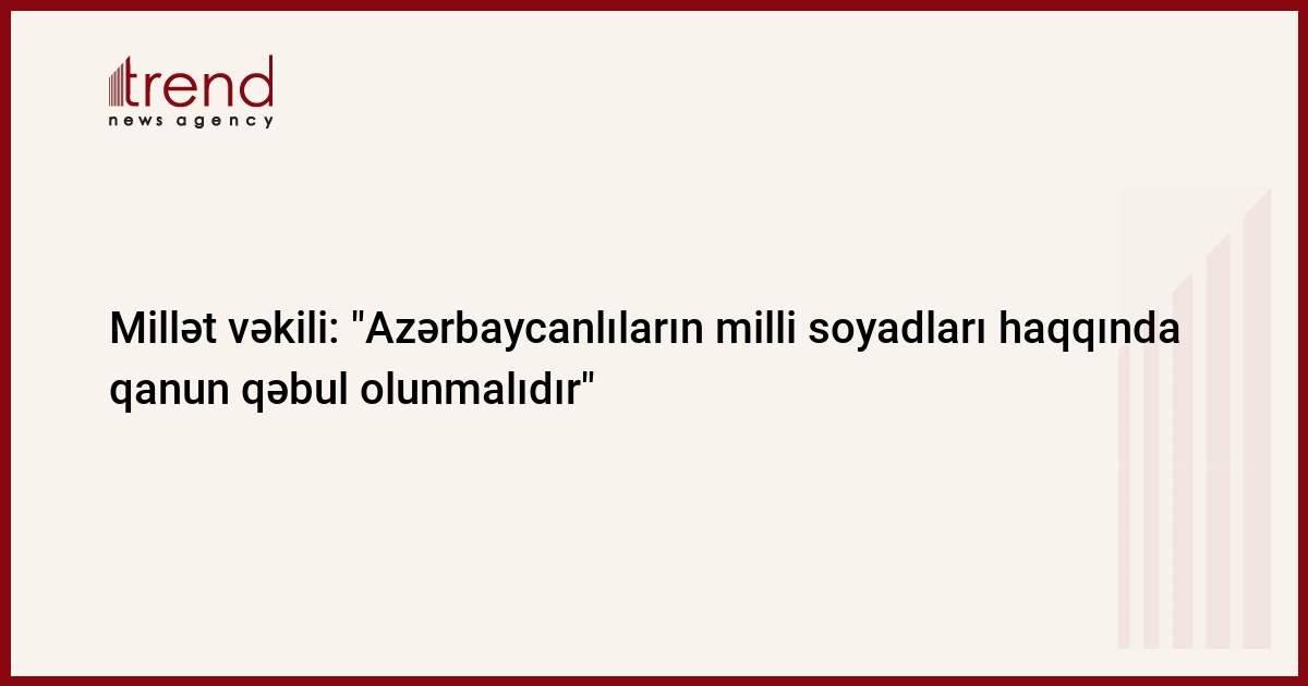 Onun fikrincə, azərbaycanlıların milli soyadları haqqında qanun qəbul olunmalıdır.