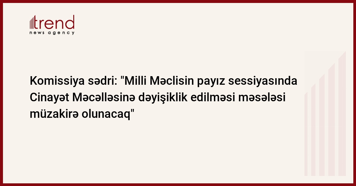 O qeyd edib ki, dəyişiklik əsasən mövcud olan boşluq və ziddiyyətlərin aradan qaldırılmasını və Azərbaycanın cinayət qanunvericiliyinin Avropa Konvensiyasına uyğunlaşdırılmasını nəzərdə tutur: "Yəqin ki, Milli Məclisin payız sessiyasında bu məsələni müzakirə edəcəyik".