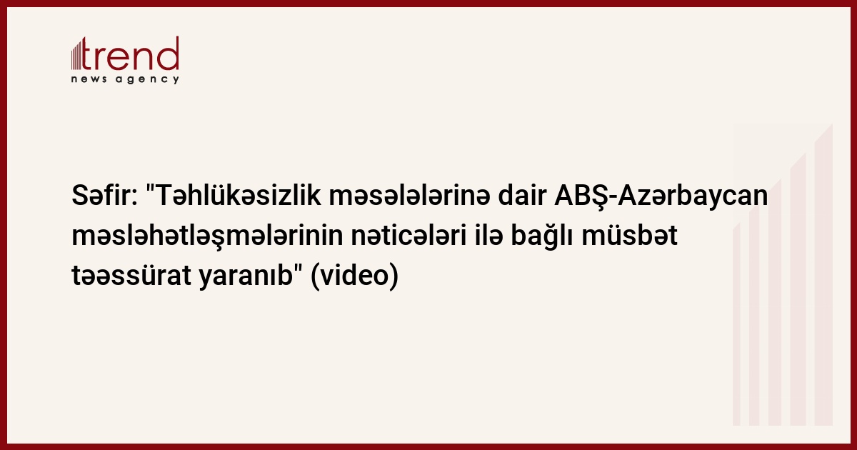 Azərbaycan, Bakı / Trend müxbir E.Hüseynli/ Təhlükəsizlik məsələlərinə dair ABŞ-Azərbaycan məsləhətləşmələrinin nəticələri ilə bağlı müsbət təəssürat yaranıb. Bu barədə bazar ertəsi jurnalistlərə açıqlamasında ABŞ-ın Azərbaycandakı səfiri Enn Dersi məlumat verib. Onun sözlərinə görə, məsləhətləşmələrdə təhlükəsizlik baxımından vacib olan məsələlər müzakirə olunub.
