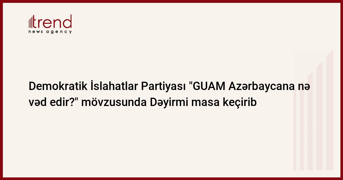 Azərbaycan, Bakı / Trend , müxbir E.Hüseynli/ Demokratik İslahatlar Partiyasının (DİP) sədri Asim Mollazadə ölkənin müxtəlif siyasi partiyalarını, qeyri-hökumət və dövlət qurumlarını təmsil edən gənclərlə birlikdə "GUAM Azərbaycana nə vəd edir?" mövzusunda Dəyirmi masa keçirib.