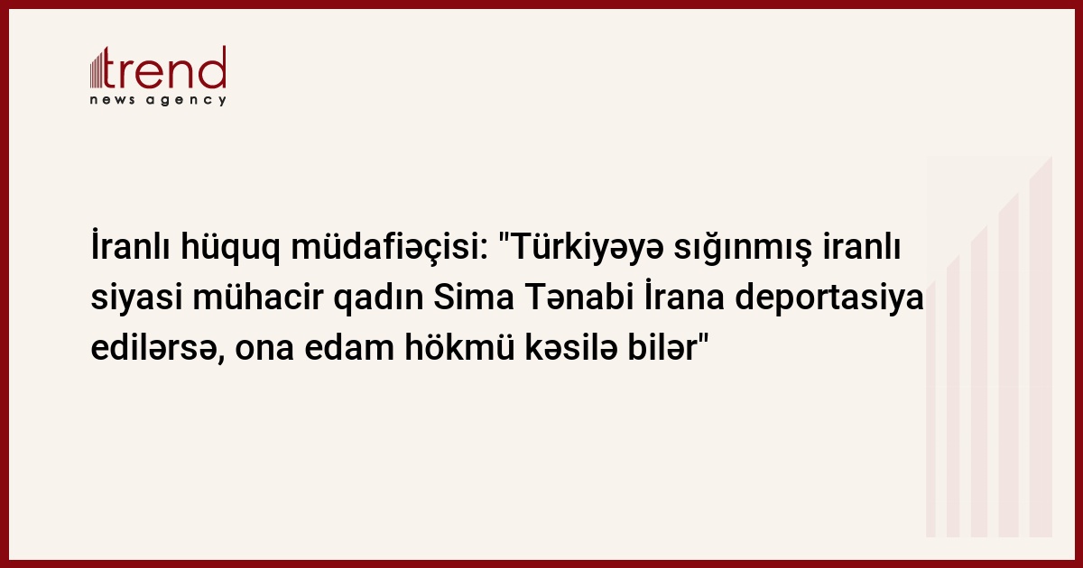 Azərbaycan, Bakı/ Trend , müxbir D.Xatınoğlu/ İranda geniş şəkildə edam cəzaları kəsildiyi ərəfədə, Türkiyəyə sığınmış iranlı siyasi mühacir qadın Sima Tənabinin İrana deportasiyası onun edam olunması ilə nəticələnə bilər. "Sima Tənabi İrana deportasiya olunsa, ona edam cəzasının kəsilməsi istisna olunmur" - deyə İsveçrədə fəaliyyət göstərən iranlı hüquq müdafiəçisi dr.Zəhra Erfani bildirib.