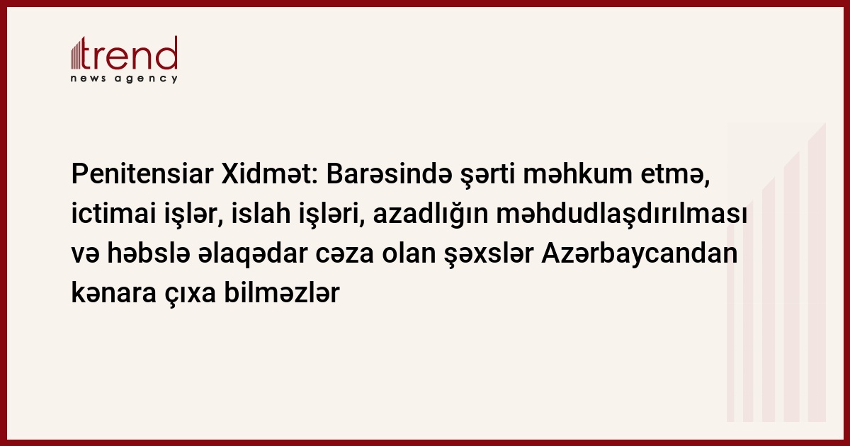 Penitensiar Xidmətin Baş İdarəsinin ictimaiyyətlə əlaqələr şöbəsinin rəhbəri Mehman Sadıqov Trend ə bildirib ki, barəsində şərti məhkum etmə, ictimai işlər, islah işləri, azadlığın məhdudlaşdırılması və həbslə əlaqədar cəza olan şəxslər Azərbaycandan kənara çıxa bilməzlər. Sadıqovun sözlərinə görə, şərti məhkum olunan şəxs, onun davranışı üzərində nəzarəti həyata keçirən orqanlara məlumat vermədən daimi yaşayış yerini, təhsil, iş yerini dəyişə bilməz, müəyyən yerlərə gedə bilməz: "Şərti məhkumluğu olan şəxs Azərbaycandan kənara çıxarsa, onun üzərində nəzarəti həyata kçirmək qeyri-mümükündür".