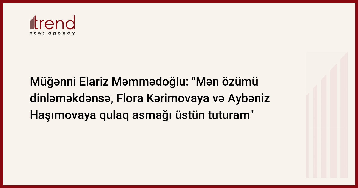 - Mən özümü dinləməkdənsə, Flora Kərimovaya, Aybəniz Haşımovaya qulaq asmağı üstün bilirəm. Flora xanım bizim estradanın canlı korifeyidir. Hərçənd onun özünün bu addan xoşu gəlmir.