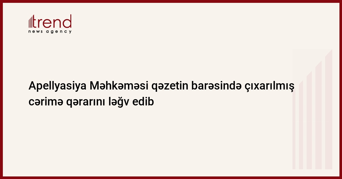 Azərbaycan, Bakı / Trend , müxbir S.İlhamqızı/ Azərbaycanın Apellyasiya Məhkəməsi çərşənbə günü "Azadlıq" qəzetinin barəsində çıxarılmış 50 min manatlıq cərimə qərarını ləğv edib. Bu barədə çərşənbə günü Trend ə qəzetin vəkili Elçin Sadıqov məlumat verib.