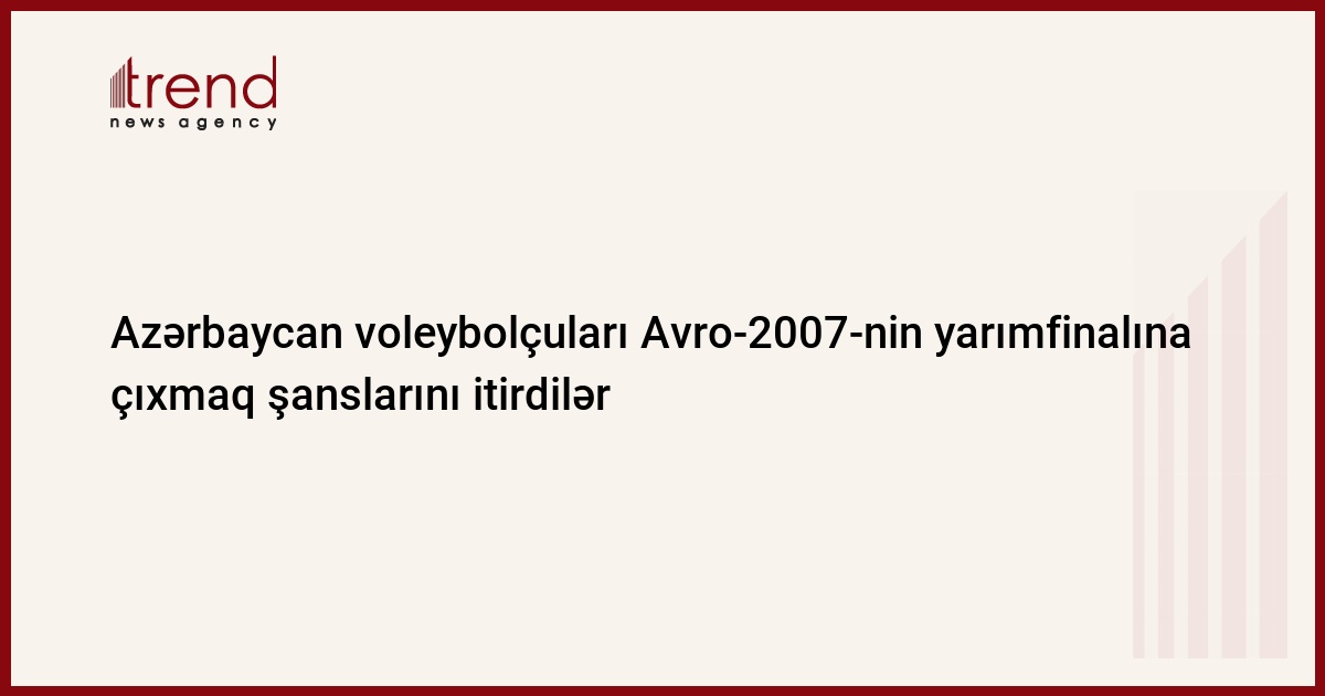 Azərbaycan, Bakı / Trend müxbir Z.Səfərov/ Azərbaycanın qadınlardan ibarət voleybol üzrə yığma komandası bu günlərdə Belçika və Lüksemburqda keçirilən Avropa çempionatının yarımfinalına çıxmaq şanslarını itiriblər.