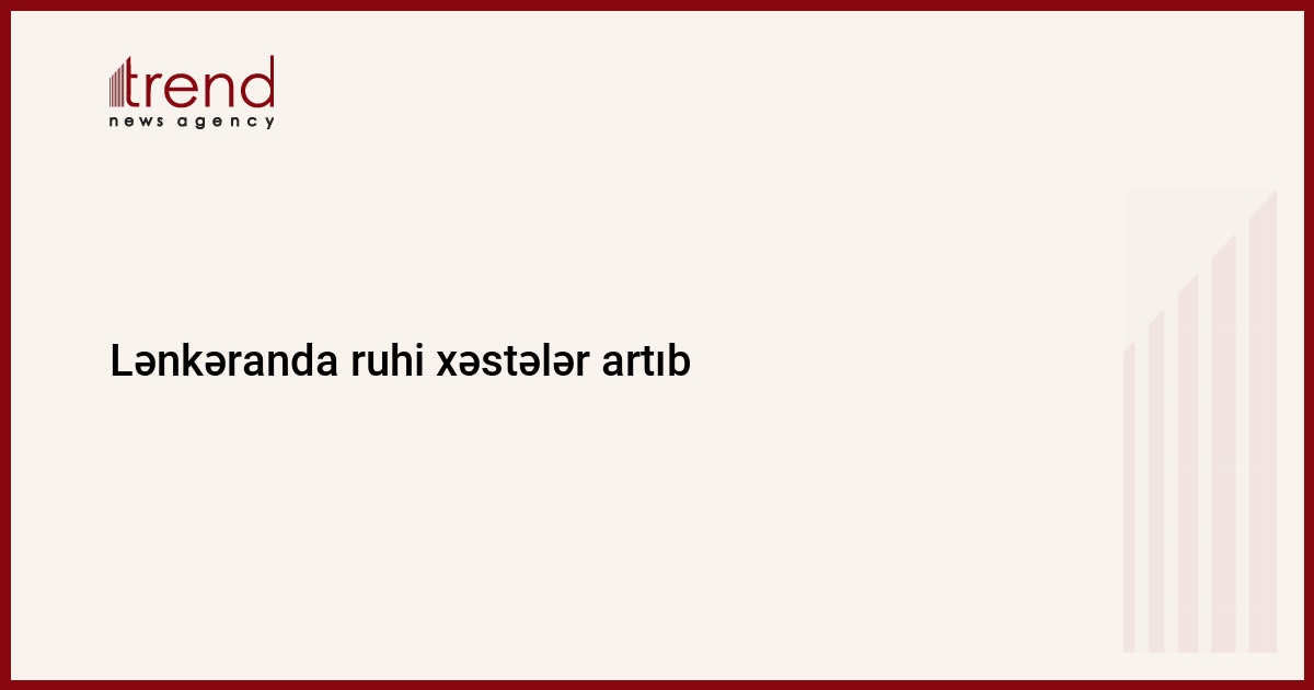 Azərbaycan, Lənkəran / Trend müxbir P.Əliyeva/ Lənkəran rayonuun Ruhi Xəstəliklər Dispanserinin qeydiyyatında olan xəstələrin 30 faizini 18-20 yaşında olan gənclər təşkil edir, çərşənbə axşamı Trend in bölgə müxbirinə dispanserin baş həkimi Maqsud Məmmədov bildirib. Onun sözlərinə görə, hazırda xəstəxanada 4 min 700 nəfər qeydiyyatdadır.